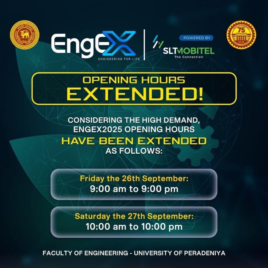 EngEx 2025, පේරාදෙණිය විශ්වවිද්යාල ඉංජිනේරු පීඨ ප්රදර්ශනය අවසන් දිනය අද!