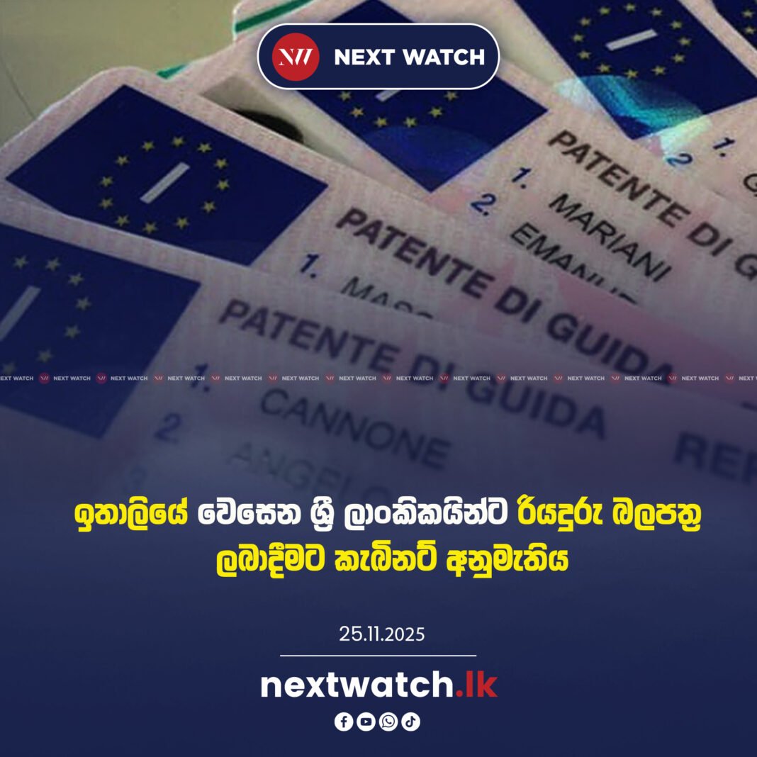 ඉතාලියේ වෙසෙන ශ්‍රී ලාංකිකයින්ට රියදුරු බලපත්‍ර ලබාදීම සඳහා වූ යෝජනාවට කැබිනට් මණ්ඩල අනුමැතිය හිමිව තිබේ.