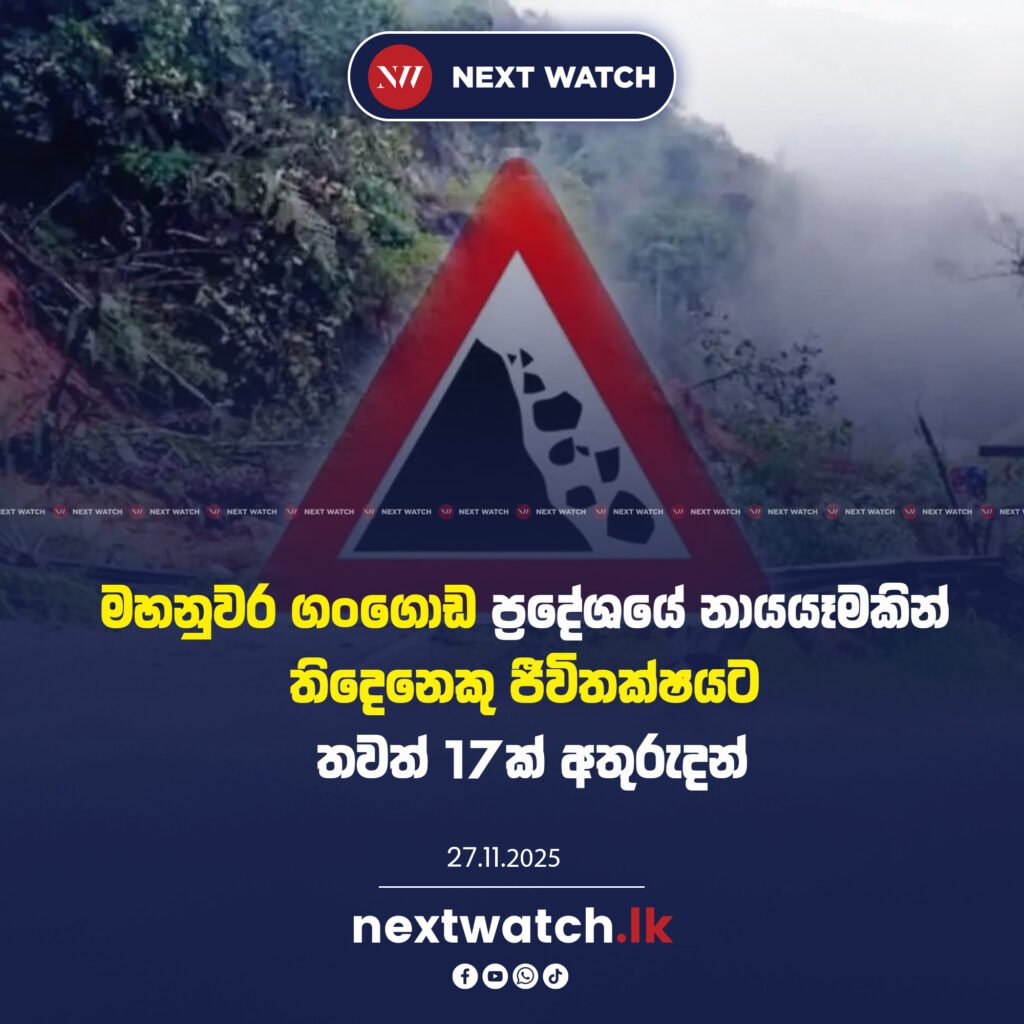 මහනුවර උඩුදුම්බර, ගංගොඩ ප්රදේශයේ අද (27) සිදුවූ නායයෑමකින් පුද්ගලයින් 03 දෙනෙකු ජීවිතක්ෂයට පත්ව තිබේ.