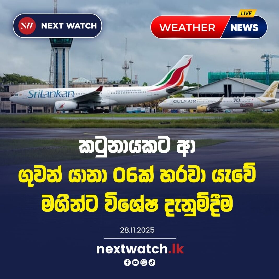 මේ අතර, කටුනායක ගුවන්තොටුපොළ වෙත ගොඩබැස්සවීමට පැමිණි ගුවන් යානා 06ක් වෙනත් ගුවන් තොටුපොළවල් වෙත හරවා යැවීමට කටයුතු කර ඇත.