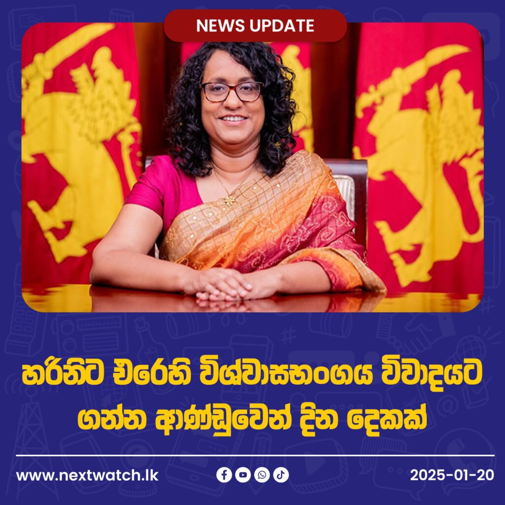 අධ්යාපන අමාත්ය හරිනි අමරසූරිය මහත්මියට එරෙහිව විපක්ෂය ගෙන ඒමට නියමිත විශ්වාසභංග යෝජනාව එළැඹෙන 22 සහ 23 යන දෙදින තුළ විවාදයට ගැනීමට ආණ්ඩු පක්ෂය සුදානම් බව අමාත්ය වෛද්ය නලින්ද ජයතිස්ස මහතා පැවසීය.