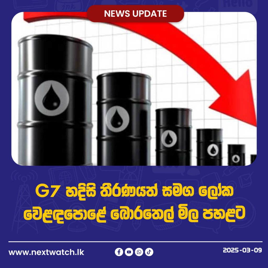 ලෝක වෙළඳපොළේ බොරතෙල් මිල 2022 වසරෙන් පසු ප්රථම වතාවට බැරලයක් ඩොලර් 100 සීමාව ඉක්මවා යාම හේතුවෙන්, ඒ පිළිබඳ සාකච්ඡා කිරීමට G7 රටවල මුදල් අමාත්යවරුන් හදිසි රැස්වීමක් පැවැත්වීමට නියමිත බව විදෙස් මාධ්ය වාර්තා කර තිබේ.