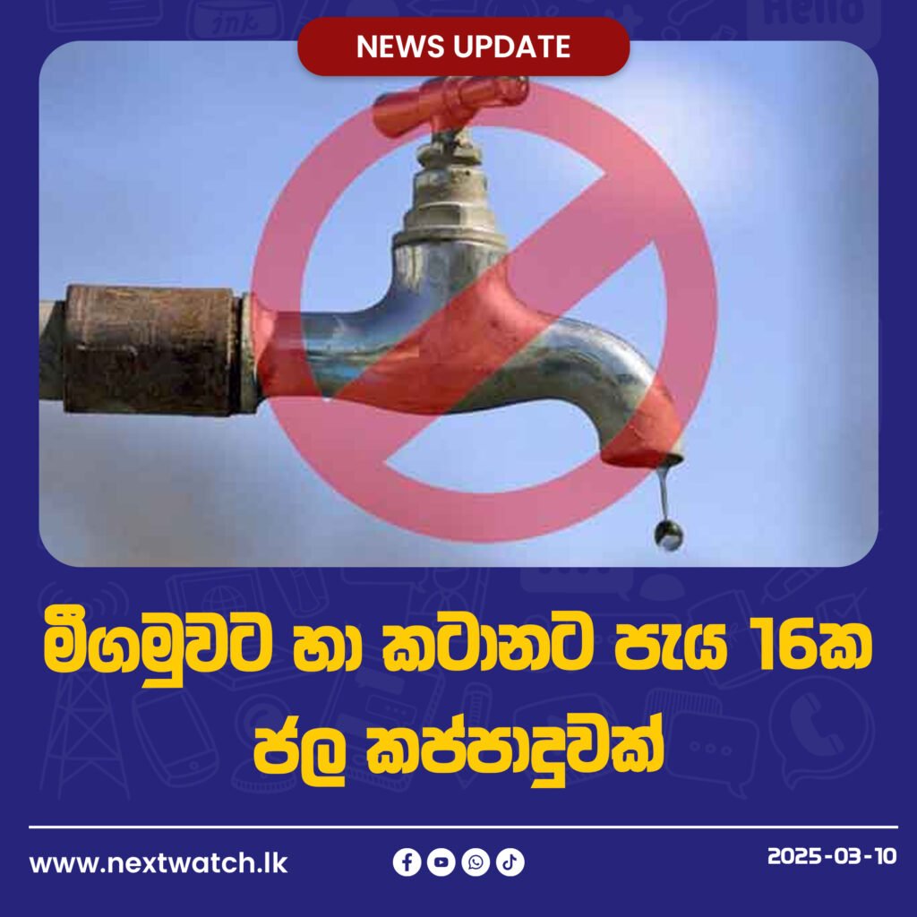 බම්බුකුලිය ජල පිරිපහදු මධ්යස්ථානයේ අත්යාවශ්ය නඩත්තු කටයුතු හේතුවෙන් මෙලෙස ජල සැපයුම අත්හිටවන බව ජාතික ජල සම්පාදන සහ ජලපවහන මණ්ඩලය දැනුම් දෙයි.