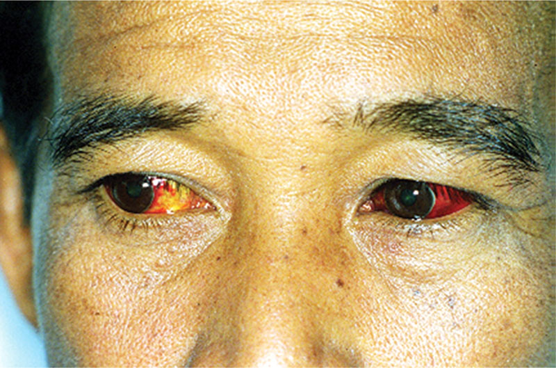 • ඇස් තද රතුපැහැවීම සහ දැවිල්ලක් හටගැනීම.