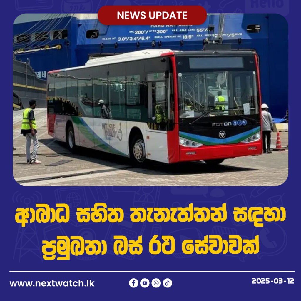 ආබාධ සහිත තැනැත්තන් සඳහා ප්රමුඛතා බස් රථ සේවාවක් ලබන මස සිට ආරම්භ කිරීමට ප්රවාහන, මහාමාර්ග සහ නාගරික සංවර්ධන අමාත්යාංශය සැලැසුම් කර තිබේ.