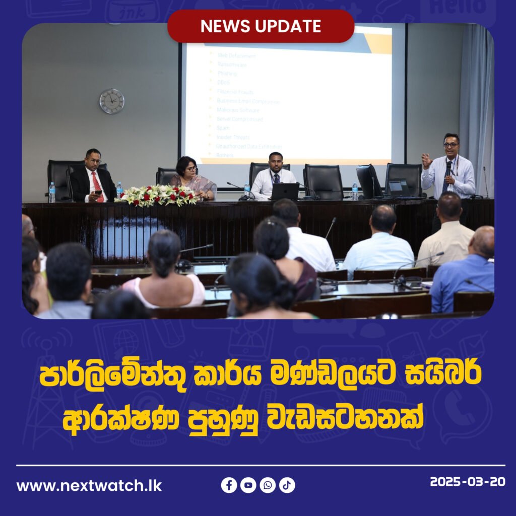 ශ්රී ලංකා සර්ට් (Sri Lanka CERT) ආයතනය විසින් පාර්ලිමේන්තු කාර්ය මණ්ඩලය සඳහා සයිබර් ආරක්ෂණ පිළිබඳ පුහුණු වැඩසටහනක් පසුගිය දිනක සංවිධානය කරනු ලැබීය. මෙම වැඩසටහන රාජ්ය අංශය තුළ සයිබර් ආරක්ෂණ දැනුම වැඩි දියුණු කිරීම සඳහා ගෙන යන අඛණ්ඩ ක්රියාමාර්ගයන්හි තවත් එක් පියවරක් වේ.