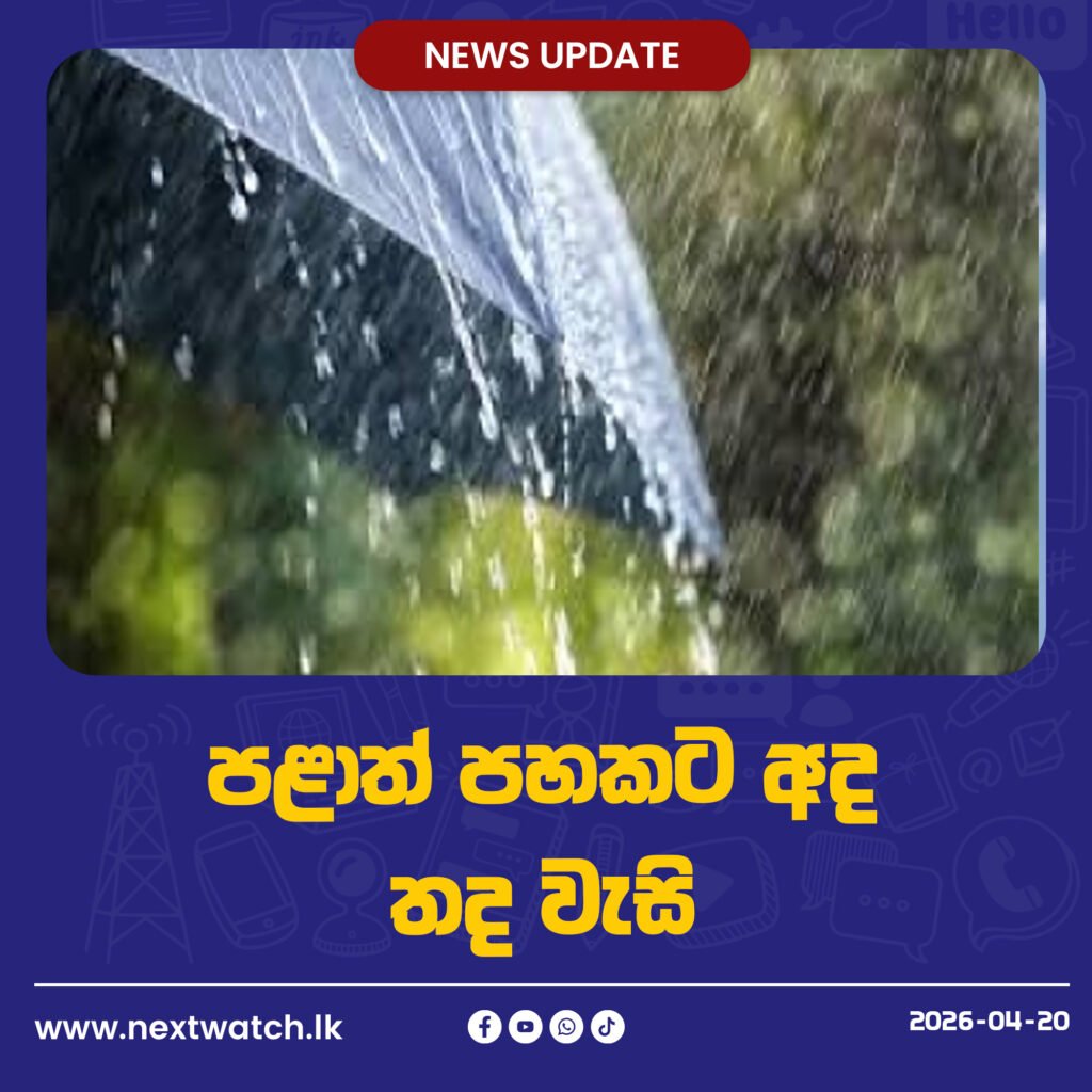 මධ්යම, සබරගමුව, බස්නාහිර, උතුරු මැද සහ දකුණු පළාතේ ඇතැම් ස්ථානවලට අද (20) දිනයේ මි.මී 75ත් – මි.මී 100ත් අතර තද වැසි ඇතිවිය හැකි බව කලගුණවිද්යා දෙපාර්තමේන්තුව නිවේදනය කරයි.