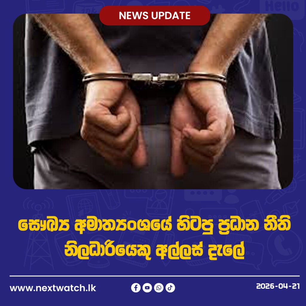 සෞඛ්ය අමාත්යංශයේ හිටපු ප්රධාන නීති නිලධාරියෙකු (විශ්රාමික) අල්ලස් හෝ දුෂණ චෝදනා විමර්ශන කොමිෂන් සභාවේ විමර්ශන නිලධාරීන් විසින් අත්අඩංගුවට ගෙන තිබේ.