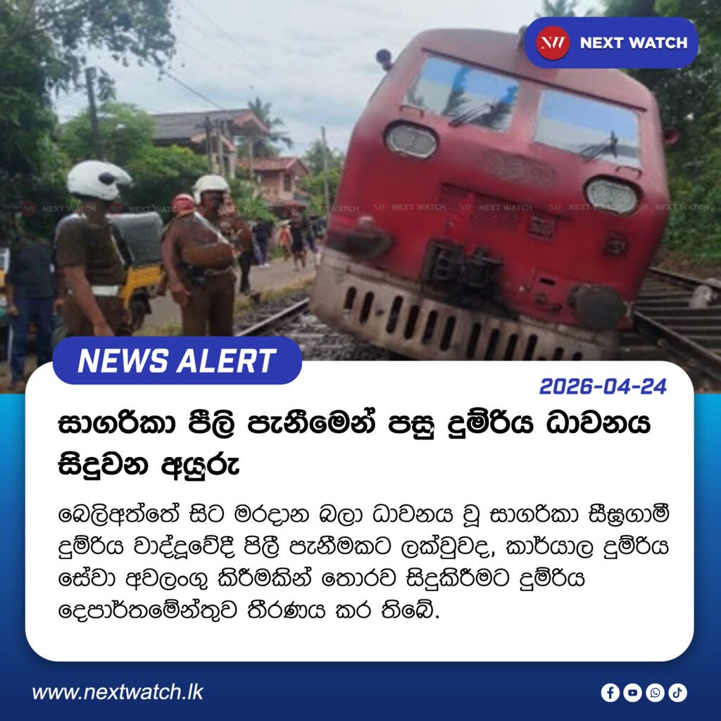සාගරිකා දුම්රිය අද (24) උදෑසන පීලි පැනීමට ලක්වූ අතර, ඒ හේතුවෙන් මන්තීරු දෙකම අවහිරවිය.