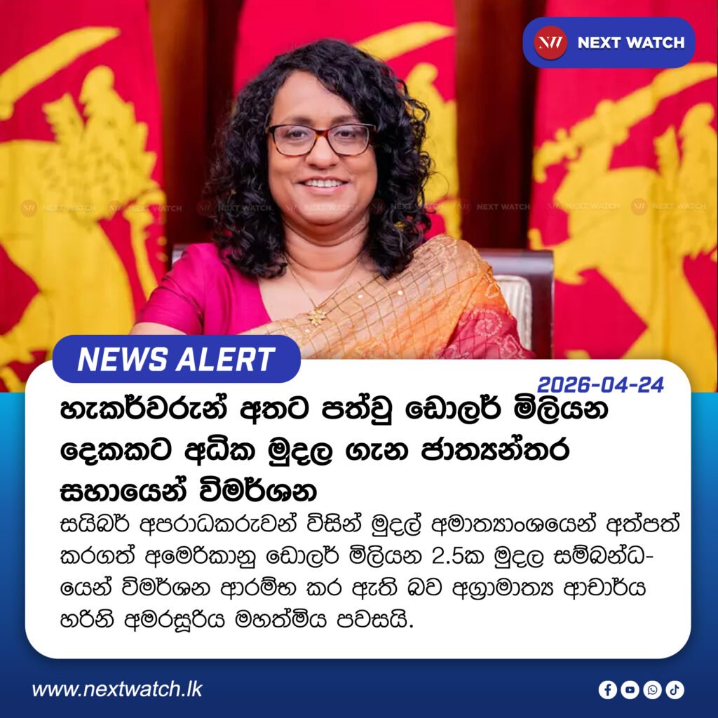සයිබර් අපරාධකරුවන් විසින් මුදල් අමාත්යාංශයෙන් අත්පත් කරගත් අමෙරිකානු ඩොලර් මිලියන 2.5ක මුදල සම්බන්ධයෙන් විමර්ශන ආරම්භ කර ඇති බව අග්රාමාත්ය ආචාර්ය හරිනි අමරසූරිය මහත්මිය පවසයි.