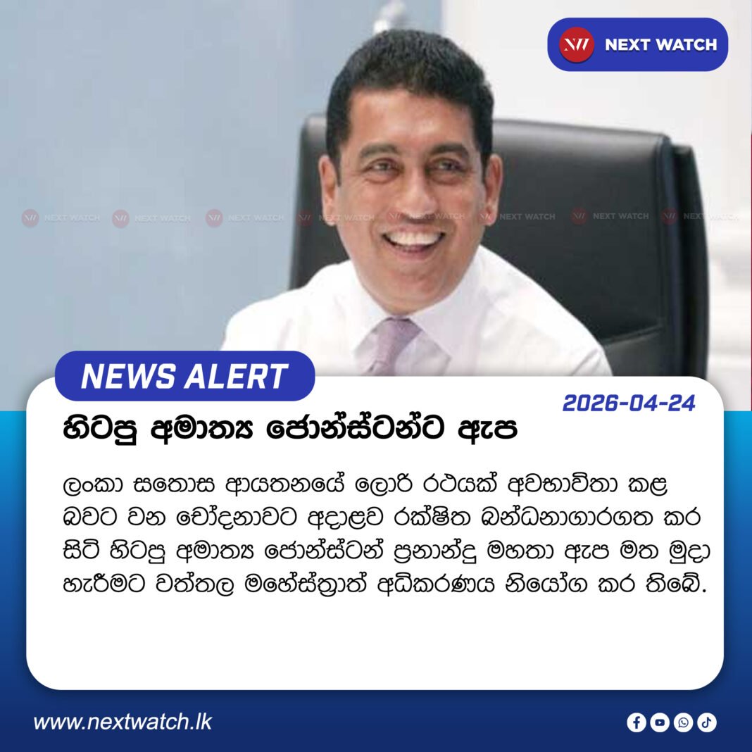 ලංකා සතොස ආයතනයේ ලොරි රථයක් අවභාවිතා කළ බවට වන චෝදනාවට අදාළව රක්ෂිත බන්ධනාගාරගත කර සිටි හිටපු අමාත්ය ජොන්ස්ටන් ප්රනාන්දු මහතා ඇප මත මුදා හැරීමට වත්තල මහේස්ත්රාත් අධිකරණය නියෝග කර තිබේ.