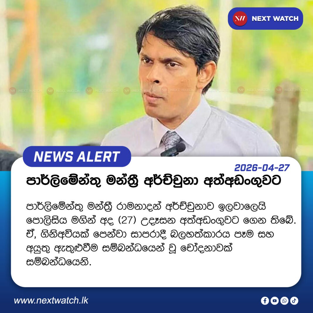 පාර්ලිමේන්තු මන්ත්රී රාමනාදන් අර්ච්චුනාව ඉලවාලෙයි පොලිසිය මගින් අද (27) උදෑසන අත්අඩංගුවට ගෙන තිබේ.