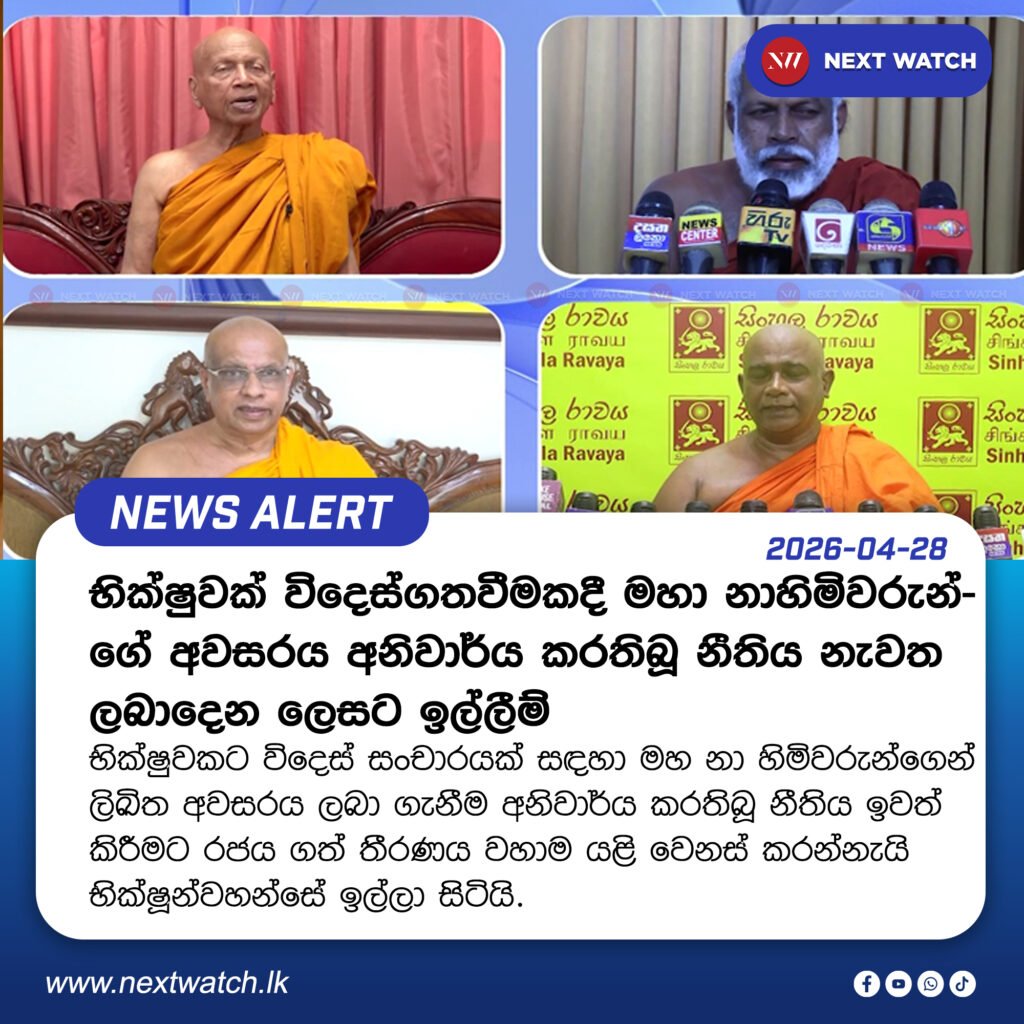භික්ෂුවකට විදෙස් සංචාරයක් සඳහා මහ නා හිමිවරුන්ගෙන් ලිඛිත අවසරය ලබා ගැනීම අනිවාර්ය කරතිබූ නීතිය ඉවත් කිරීමට රජය ගත් තීරණය වහාම යළි වෙනස් කරන්නැයි භික්ෂූන්වහන්සේ ඉල්ලා සිටියි.