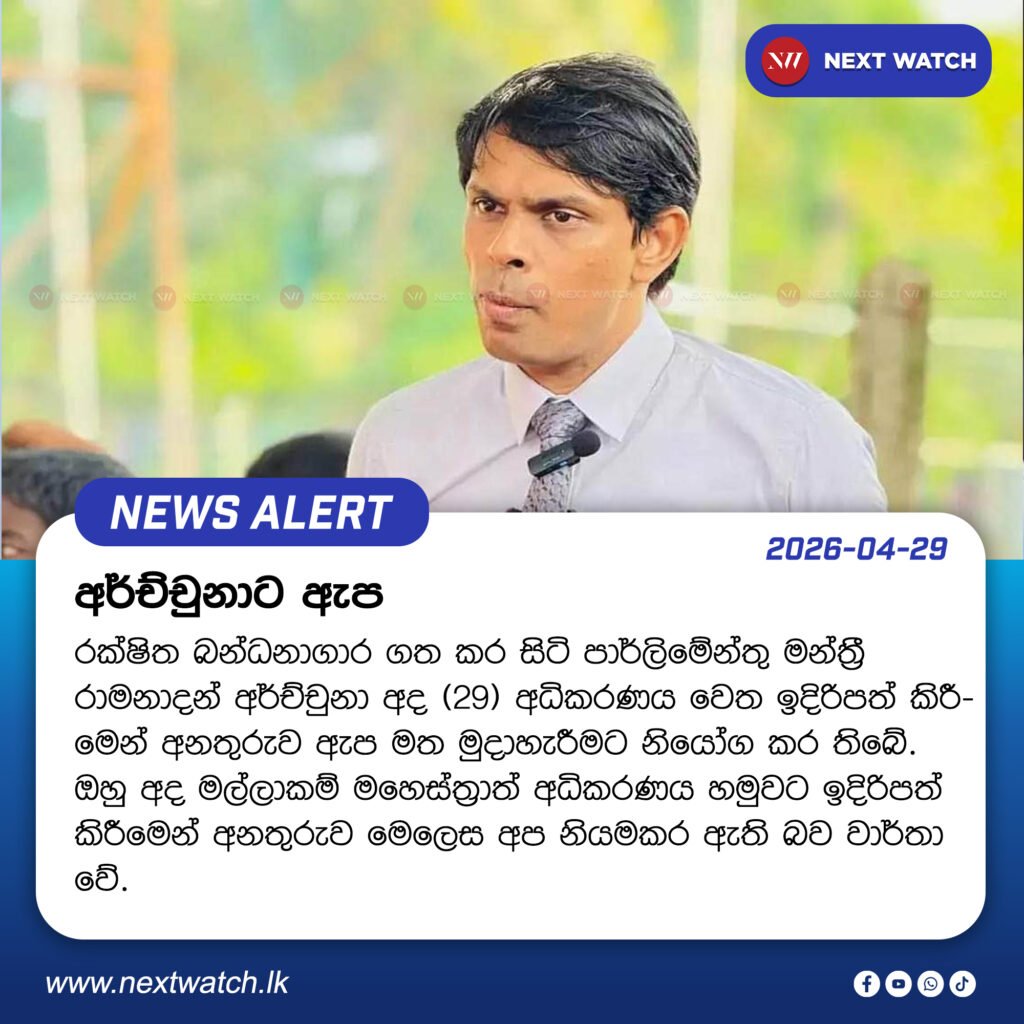 රක්ෂිත බන්ධනාගාර ගත කර සිටි පාර්ලිමේන්තු මන්ත්රී රාමනාදන් අර්ච්චුනා අද (29) අධිකරණය වෙත ඉදිරිපත් කිරීමෙන් අනතුරුව ඇප මත මුදාහැරීමට නියෝග කර තිබේ.